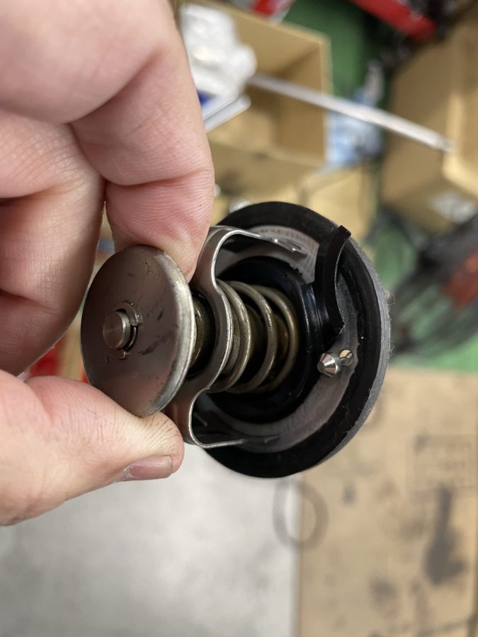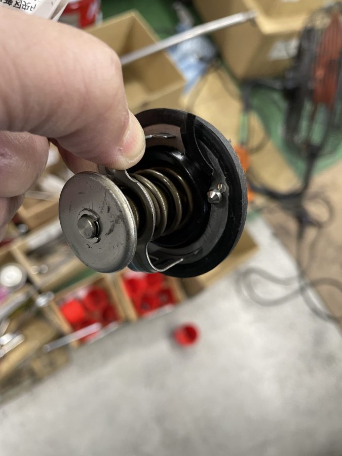 水温が下がるとサーモが閉じてエンジン内を循環させる切り替えを担っています。